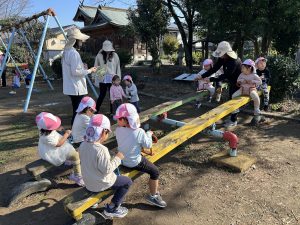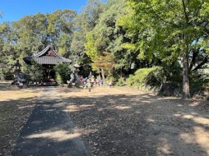 「遊ばせてください」とお参りし、どんぐり拾いスタート!