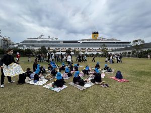 くまモンポート八代では、大きな大きな豪華客船に目を丸くする!