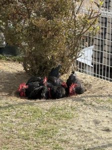 チャボも気持ちよさそうに、砂浴び